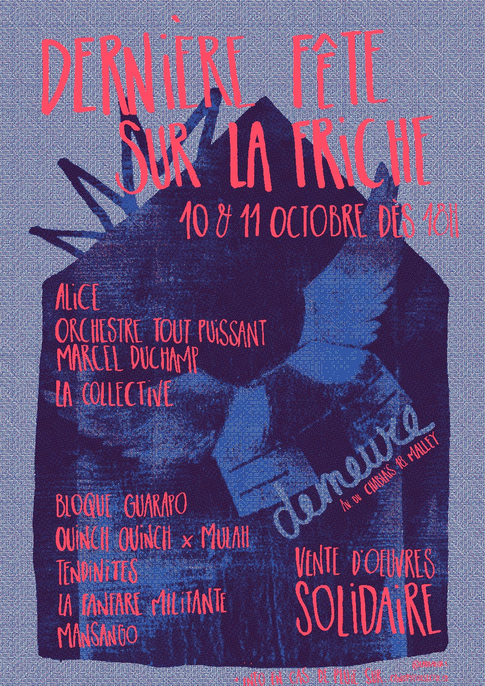 Culture et événementsLe Jardin aux 1000 mains tiendra un stand boisson en soutien à La Demeure/Canopy lors de sa Dernière Fête sur la Friche. Nous servirons entre autre notre propre bière, préparée avec amour au printemps dernier en vu de cet événement. D’autres boissons originales seront servies, et une ribambelle de membres actif·vexs du Jardin seront présentexs pour vous servir.